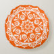 Deze witte mandala zit op een heldere, papaverachtige oranje achtergrond. De kleur is helder en creatief. Deel van het Collectie Brosya Mandala. Dit ontwerp kan niet zo helder als online verschijnen.