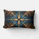 Copyright © 2010, Susan Wallace. Een serie van geometrische vormen in de schoppen van oranje en blauw straalt van een centraal punt uit, allen omringd door vorken van goud. een ontwerp dat is afgestemd op een rechthoekige lendenkussen; ook kussen met vierkante wegwerppen beschikbaar.