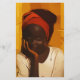 Djibouti, Djibouti city, Portrait of young african girl with a red scarf on the head sitting in front at door