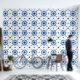 Dit product heeft een ingewikkeld ontwerp met een donkerblauwe achtergrond en witte sierpatronen. Het ontwerp doet denken aan traditionele keramische of porseleinen stijlen, die van belang kunnen zijn voor degenen die de klassieke of esthetiek waarderen.