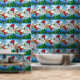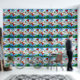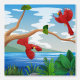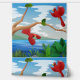 Dit product heeft een prachtig landschap met rode kardinalen die over het meer vliegen - blauw, rood, wit, groen.