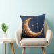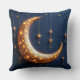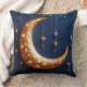 Het afbeelding beschikt over een prachtig verlichte halve maan versierd met sprankelende lichten. De maan wordt geplaatst tegen een diepblauwe gestructureerde achtergrond, waardoor een nachtelijke hemel ambiance ontstaat. Aan de maan hangen verschillende kleine, gloeiende sterren, die elk dezelfde gouden tint reflecteren. Het totale effect is magisch en grillig, wat een serene nachtelijke scène oproept vol met fonkelende hemelse elementen.