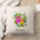 Een mooie kleurrijke bloem op ivoor Sierkussen. Bloemen van roze, roos goud en gele schoppen. De tekst kan worden gepersonaliseerd.