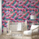 Prachtige Liefde pioenrozen op helderblauw azuur Behang