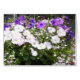 Een overvloed aan schuimige paarse en witte petunia's. De kaart kan aan uw eigen ontwerp worden aangepast.