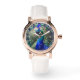 Dit horloge heeft een prachtig pauwenontwerp in prachtige blauwgroen, koningsblauwe en gouden kleuren. Romantisch en elegant motief. Perfect en personaliseerbaar cadeau voor elke gelegenheid.