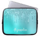 Deze laptophoes is uitgerust met faux aqua mint en turquoise die glitter metallic textuur en elegant calligrafiefont druppelt.