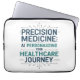 Futuristisch medisch technologieontwerp met de slogan "PRECISION MEDICINE: AI PERSONALISEERT UW REIS IN DE GEZONDHEIDSZORG" met slanke circuitlijnaccenten. Perfect voor vernieuwers van gezondheidstechnologie, AI-professionals en medische futuristen die gepersonaliseerde zorg vormgeven.