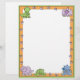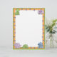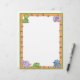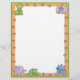 Deze schattige cartoon briefhoofd kenmerkt de dinosaurusvoet prints op een oranje grens en baby dinosaurussen in de bovenste hoeken en langs de onderste grens.