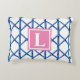 Preppy Blue Trellis Bamboe Patroon Monogram Accent Kussen