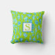 Preppy Coastal Sea Shells op Lime Green Monogram Kussen