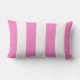 Dit roze en witte gestreepte kussen heeft een trendy preppy flamingo Beach esthetiek met coördinerende strepen aan de achterkant. U kunt personaliseren met jouw naam en locatie. Perfect voor een strandhuis of strandverhuur.
