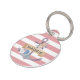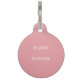 Twee zijhonden ID-labels met een blozend roze achtergrond aan de voorkant met witte strepen en een serif elegant monogram op een bloemanker. De achterzijde bevat de naam van de hond en het telefoonnummer van de eigenaar.