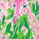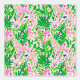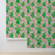 Het behang heeft een grillig preppy-patroon met roze en groene giraffen die elegant zijn verweven met levendige, weelderige groene bladeren. De giraffen staan hoog en speels tegen de roze achtergrond, hun lange nek strekt zich uit te midden van een hoop groen, die een pop van kleur en een vleugje charme van de natuur toevoegen. Het algehele ontwerp straalt een leuke, levendige sfeer uit die elke ruimte zou opfleuren, waardoor het een perfect decoratief stuk is voor een kantoor, woonkamer of slaapkamer.