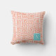 Preppy Greek Key Monogram – Coral & Turquoise Buitenkussen