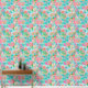 Een naadloos preppy patroon met botanische elementen, waaronder bloemen, bladeren en gras, in baby roze, koraal, donkerroze en groen op een mintgroene achtergrond. Het ontwerp heeft een handgeschilderde uitstraling, het mengen van zachte en levendige tinten tot creëer en een fris en stijlvol effect.