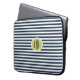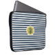 Zeemacht en witte gestreepte achtergrond met gouden ovaal monogram houder. Gepersonaliseerd decoratieve lettertypemonogrammen maken een geweldige persoonlijke aanraking.