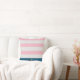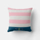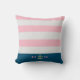 Preppy nautische gooi kussen met blush en witte strepen, op de bodem een marine blauwe rand als een dubbele monogram houder met een gouden anker tussen hen. Personaliseer met je eigen monogram in een elegant schreefloos lettertype en kies tussen twee kleuren; blush en blauw. Bekijk onze winkel voor meer artikelen uit ons 'Nautical Stripes' collectie.