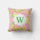Preppy Palm Beach Print roze bloemen monogram Kussen