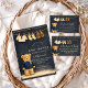 A charming preppy baby shower design featuring a sweet teddy bear dressed in a classic green plaid jacket and bow tie. Above the bear, a delicate clothesline displays tiny baby clothes and shoes, creating a nostalgic storybook nursery scene. The deep navy background and subtle tartan border add a refined, vintage-inspired touch that feels both elegant and playful. Perfect for a stylish baby shower celebration with a classic preppy aesthetic.