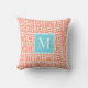 Preppy Square Lattice Monogram - Coral & Turquoise Buitenkussen
