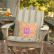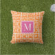 Preppy Square Lattice Monogram Hot Pink & Orange Buitenkussen