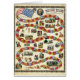 Handgekleurde houtgravering met een spelbord met rode, gouden en blauwe spaties, genummerd tussen 1 en 122; op de plank staan illustraties die genummerd zijn en overeenkomen met de blauwe " starred " - ruimtes , die actiepunten zijn , waarbij de speler op de plank de instructies volgt die met de bijbehorende afbeelding zijn gegeven en dienovereenkomstig beweegt . Aan het begin van het spel is een portret van George Washington en aan het einde is er een rooskleurig uitziende homestead geïdentificeerd als het "huis van de familie Washington".