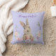 Adorable kussen met een grillige handgeschilderde haas in een bloementuin. Hij houdt een beschilderd paasei vast. De bovenkant van het kussen zegt "Prettig Pasen" tegen een lavendel stippen achtergrond. De achterkant van het kussen is hetzelfde, maar zegt "Gelukkig Voorjaar", dus als Pasen voorbij is, kun je het kussen nog steeds gebruiken! Zo schattig!