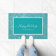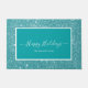 Prettige feestdagen Moderne Deurmat met een wit schrift op een blauwgroen glitter achtergrond. Personaliseer met uw familienaam of tekst.