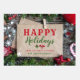 Verstuur een feestvreugde met dit unieke ontwerp met een bericht dat is gebaseerd op feestelijke kerstachtergrond (bruine papierenvelop, papierklem, groen, snoeprietjes, sneeuwvlokken), waarin staat: "Prettige feestdagen van onze familie naar de jouwe." De achterzijde heeft dit volgende volledig editable bericht op groene achtergrond met rood lint en groen accent, "PEACE: Ik wens u en uw familie zegeningen van vrede, liefde en vreugde voor dit vakantieseizoen en altijd."