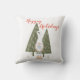 Prettige feestdagen Maak je huis feestelijker met dit schattige en elegante kerstkussen! Winterwoudscène met een magere Scandinavische kabouter met een schattige blauwe vogel voor pijnbomen. In de Prettige feestdagen rode typografie staat het citaat "?". Witte achtergrond.