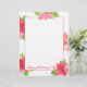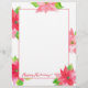Een fel en briefhoofd voor kerstbrieven met roze en fuchsia poinsettia-bloemen geschilderd met waterverf. In de taal van bloemen symboliseren poinsettia’s waardering en "wees van goede moed." U kunt de tekst aanpassen aan uw behoeften.