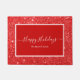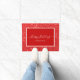 Prettige feestdagen Elegant Deurmat met een wit script op een rode achtergrond verfraaid door een rode glitter achtergrond. Personaliseer met uw familienaam of tekst.