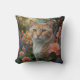 A pretty white and orange cat enjoying a beautiful Summer day surrounded by a charming pastel cottage floral garden.