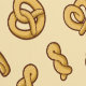 Pretzels en andere gebakken hartige snacks. Naadloos patroon. Aangepaste achtergrondkleur.
