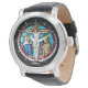 Voeg naam, datum, persoonlijke boodschap toe aan dit horloge met een grafische voorstelling van een glas-in-loodraam met Jezus aan het kruis. Geweldig priester jubileum wijding cadeau idee, herdenkings- en uniek. Andere ontwerpen hier beschikbaar: www.zazzle.com/trending2016/priest*