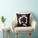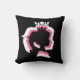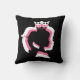 Een zwarte worp kussen met witte, zwarte en roze gelaagde prinses silhouette design.