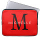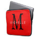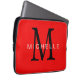 Professioneel rood zwart monogram Jouw naam Laptop Sleeve