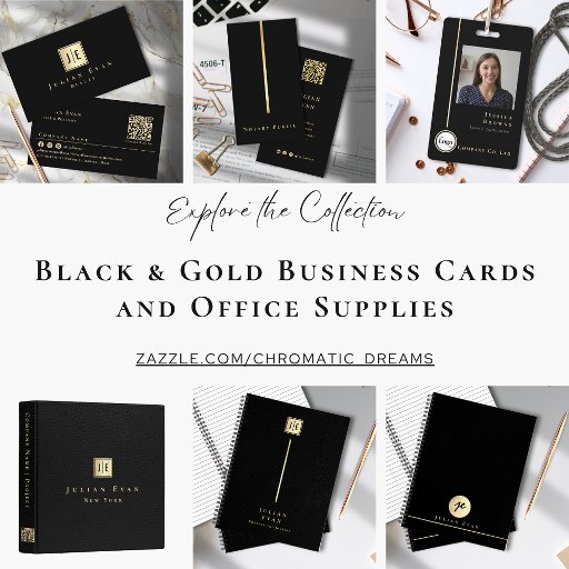 Black and Gold Business Cards and Office SuppliesOntworpen door Jennifer L.