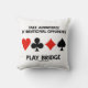 Laat je wrange gevoel van bridge humor zien met dit kussen met de vier kaartpakken samen met het volgende brugadvies: "Profiteer van Irrational Opponents Play Bridge". Gedenkwaardige bridge gezegde attitude gooi kussen voor elke fervent bridge speler die irrationaliteit herkent wanneer het spelen van een bridge hand!