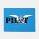 Piloten en luchtvaartfans zullen dol zijn op deze deurmat gedrukt in prachtig felblauw en het woord PILOT naast de propeller van een vliegtuig.
