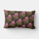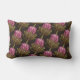 Lenden kussen met waterverf protea illustratie op donkere achtergrond.