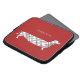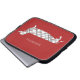 Een persoonlijke laptophoes voor hondenliefhebbers met een worst of liefhebbers van alles wat stijlvol is en een beetje grillig met een langwerpige, langwerpige vlekvormige worsthond op rood.