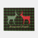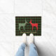 Deze mooie mat wordt bewaakt door twee rendieren - een rood en een groen - tegen een groene en zwarte vlakke achtergrond. De tekst "Merry and Bright" verschijnt onder de rendiertjes, maar u kunt het in een ander bericht veranderen of in plaats daarvan jouw naam toevoegen.