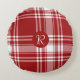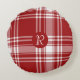 Pset Tartan Red White Monogram Holiday Kerstmis Rond Kussen