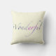 Deze multicolored blauwe explosie van kleur op een zwarte achtergrond abstract kunstschilderontwerp bestaat uit vele kleuren zoals geel, blauw, oranje, roze, aqua en paars. Het ontwerp is handmatig geschilderd met behulp van digitale kunstmedia, waardoor het een organische maar etherische kleur voelt die elke dag helderder wordt. Aan de achterkant van dit kussen is kunst-typografie met het kunstwerk op de voorkant van het kussen. Word art 'Wonderful' zit op een crèmeachtergrond die kan worden gewijzigd door op de aanpassingsknop te drukken. Kunsttypografie en schilderij gemaakt door kunstenaar Catherine Sweetman