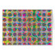wenskaarten met heldere en kleurrijke vlekken / polka stippen patroon in psychedelische regenboogkleuren.