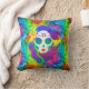 Een psychedelische suikerschedelafbeelding die u kunt aanpassen over een levendige stropdas-kleurige achtergrond met een fractal-achtig effect. U kunt elke gewenste kleur kiezen voor het schedelgezicht (hier weergegeven in het wit). Er zijn ook 14 afbeelding filters om mee te spelen voor verschillende effecten, Veel plezier met het maken van deze groovy accent kussens uniek voor u!