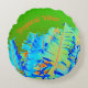 Voel de Tropische Vibes van deze ronde kussen met heldere, psychedelische neontinten van groene, blauwe en oranje palmschijfjes. Het is levendig, kleurrijk en leuk! Deze palmboomkussen hebben een retro pop kunst. Personaliseer met een Naam of uw eigen tekst. Dit afbeelding is een originele foto van JLW_FOTOGRAPHY
