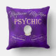 Dit mystieke gooi kussen heeft een psychisch thema over een donkere pruim paarse, folie stijl achtergrond. Een afbeelding van een kristallen bol wordt in het midden geplaatst, met twee spandoeken eronder. Een voorbeeld Palm Readings service is afgedrukt op de eerste banner, en Tarot Kaarten op de tweede. U kunt het kussen personaliseren om uw eigen aangepaste tekst op te nemen. Bovenaan staat een voorbeeldnaam van het medium Madame Mystique. Het woord Psychic is gedrukt in een elegant gouden lettertype. Het maakt een uitstekende Halloween decoratie.
